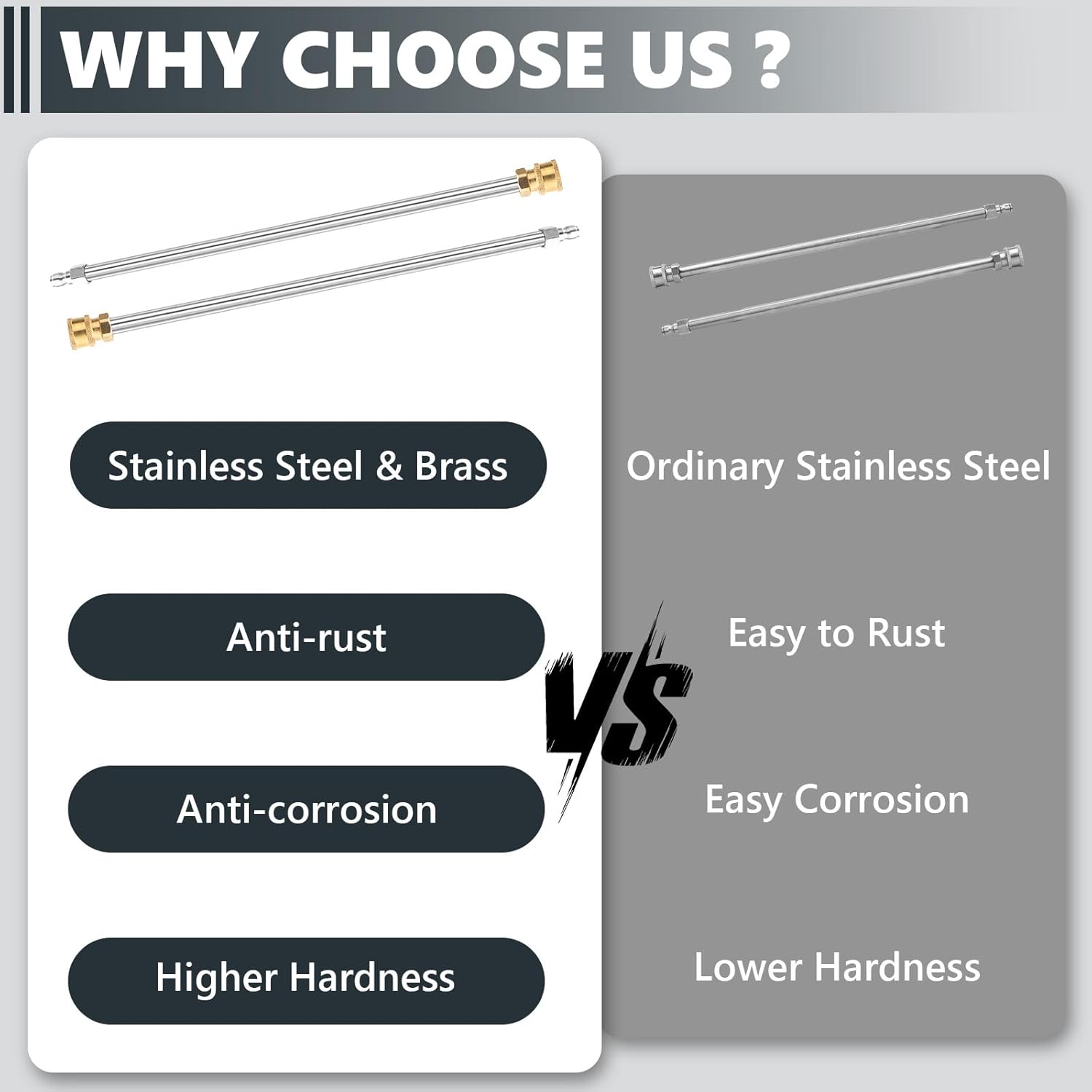 - High-Quality Materials: Crafted from durable stainless steel with solid brass fittings, this 17-inch spray lance ensures exceptional durability and longevity, even in demanding applications. Each pack includes two extension wands, compatible with both hot and cold water.