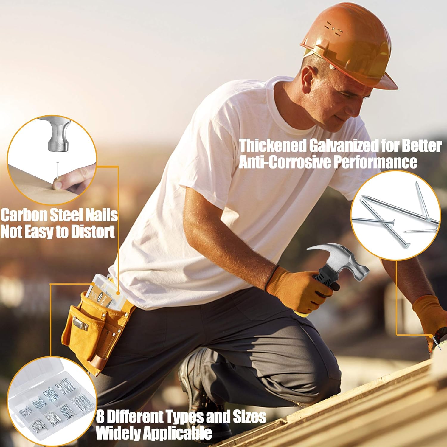 - HIGH-CLASS MATERIALS – The 700Pcs hardware wall nails are all made from heavy-duty carbon steel and double galvanized for better anti-corrosive and anti-rust performance. The 8oz mini kids hammer consists of a hammer head forged of strong and robust carbon steel and a soft anti-slip TPR handle. The metal part of the hammer is specially processed to be rust-proof and durable, it is built to last tens of years.