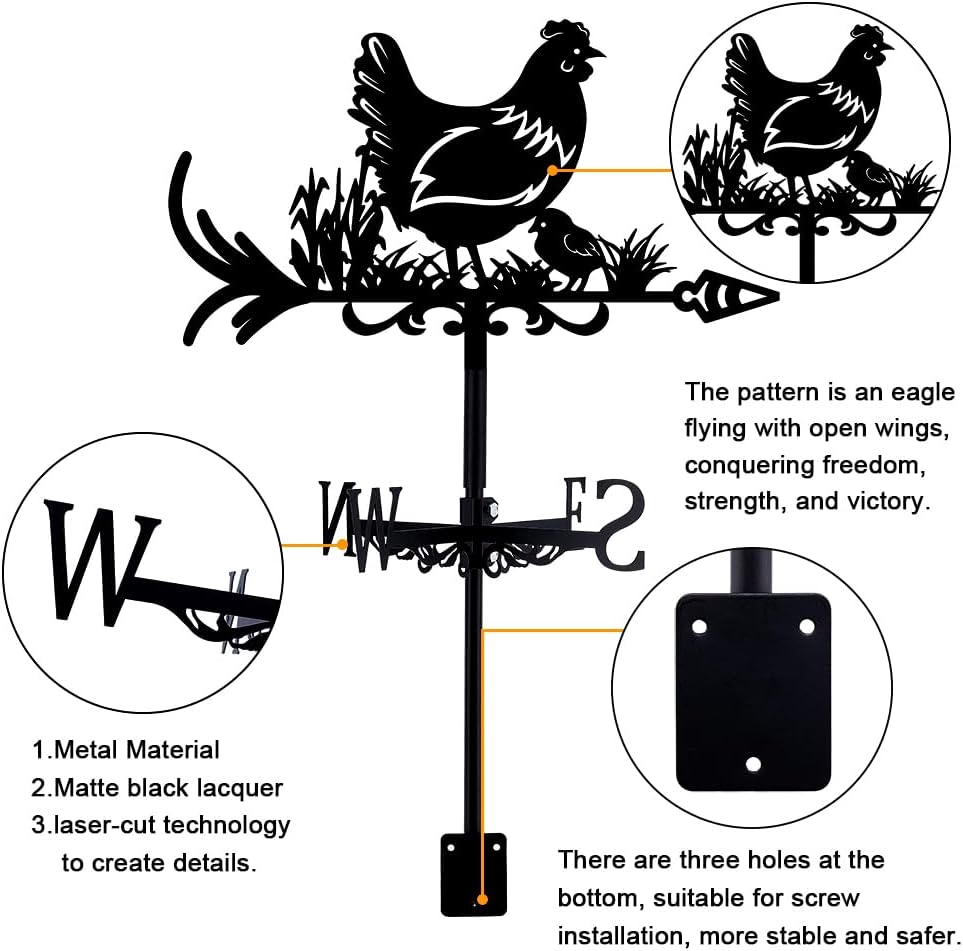 Chicken Wind Vanes for Yard Animals Metal Weathervane Roof Mount for Gardens Outside Black Weathervanes Farmhouse