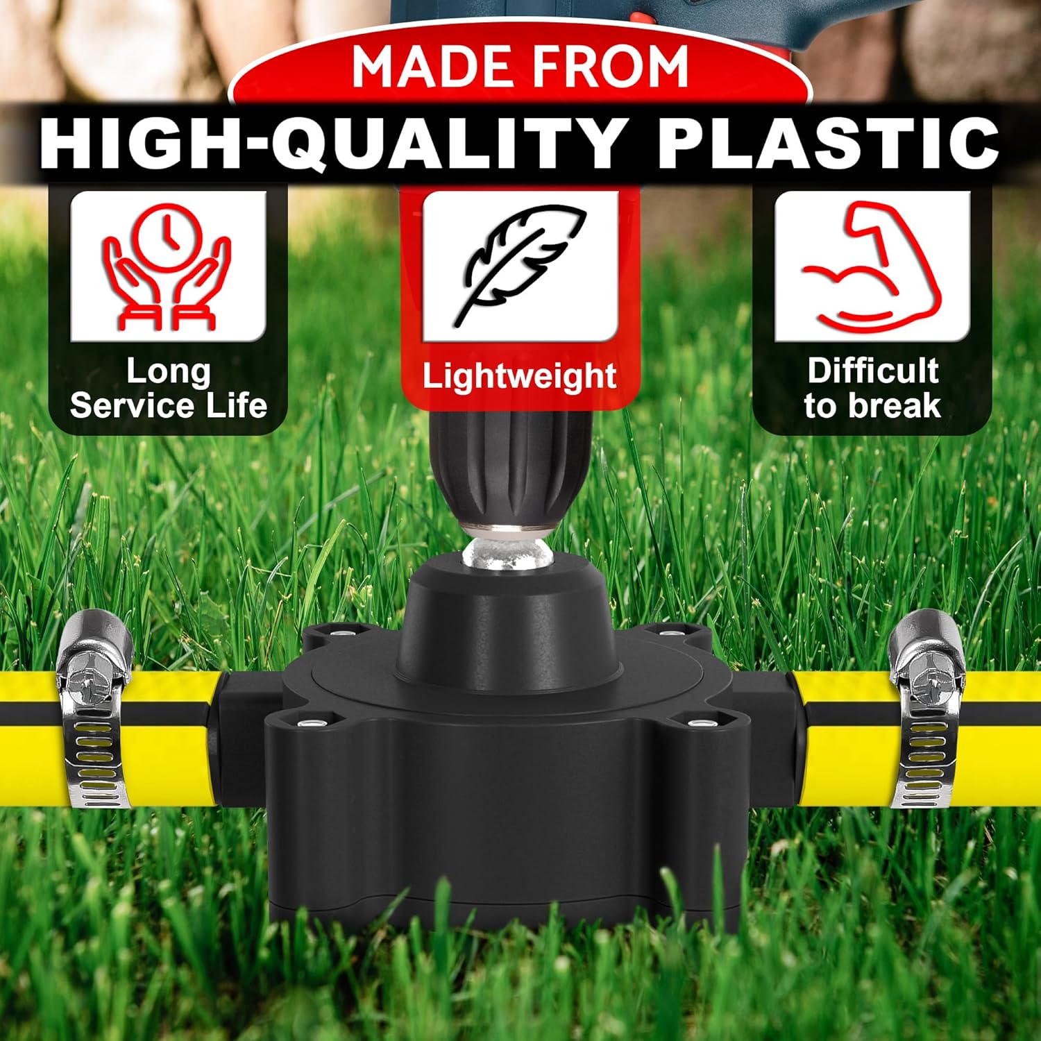 - Outstanding Performance of Drill Pump for Gasoline: The drill powered pump works according to the power and speed of the hand drill. This drill water pump delivers excellent liquid flow with low power consumption. The thermal overload protection impact drill is built to make it easy to use