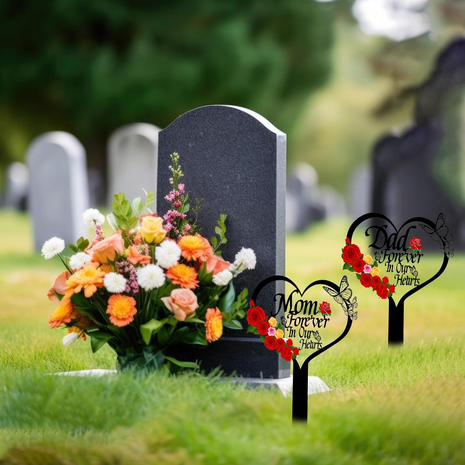 - Meaningful Design: The memorial plaque for outdoors is designed into heart shape, with the word [Mom] or [Dad] printed on it, decorated with colored flower, elegant and beautiful, which can express your thoughts of the departed mom and ease your sadness